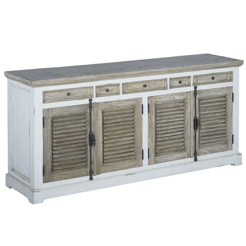 Het dressoir Amanda is voorzien van 4 deuren met daarachter handige opbergvakken en 5 laden. De deuren zijn voorzien van sierlijke espagnolet sluitingen.Kleur: C121 Grey White WashLevertijd: 2 – 6 weken