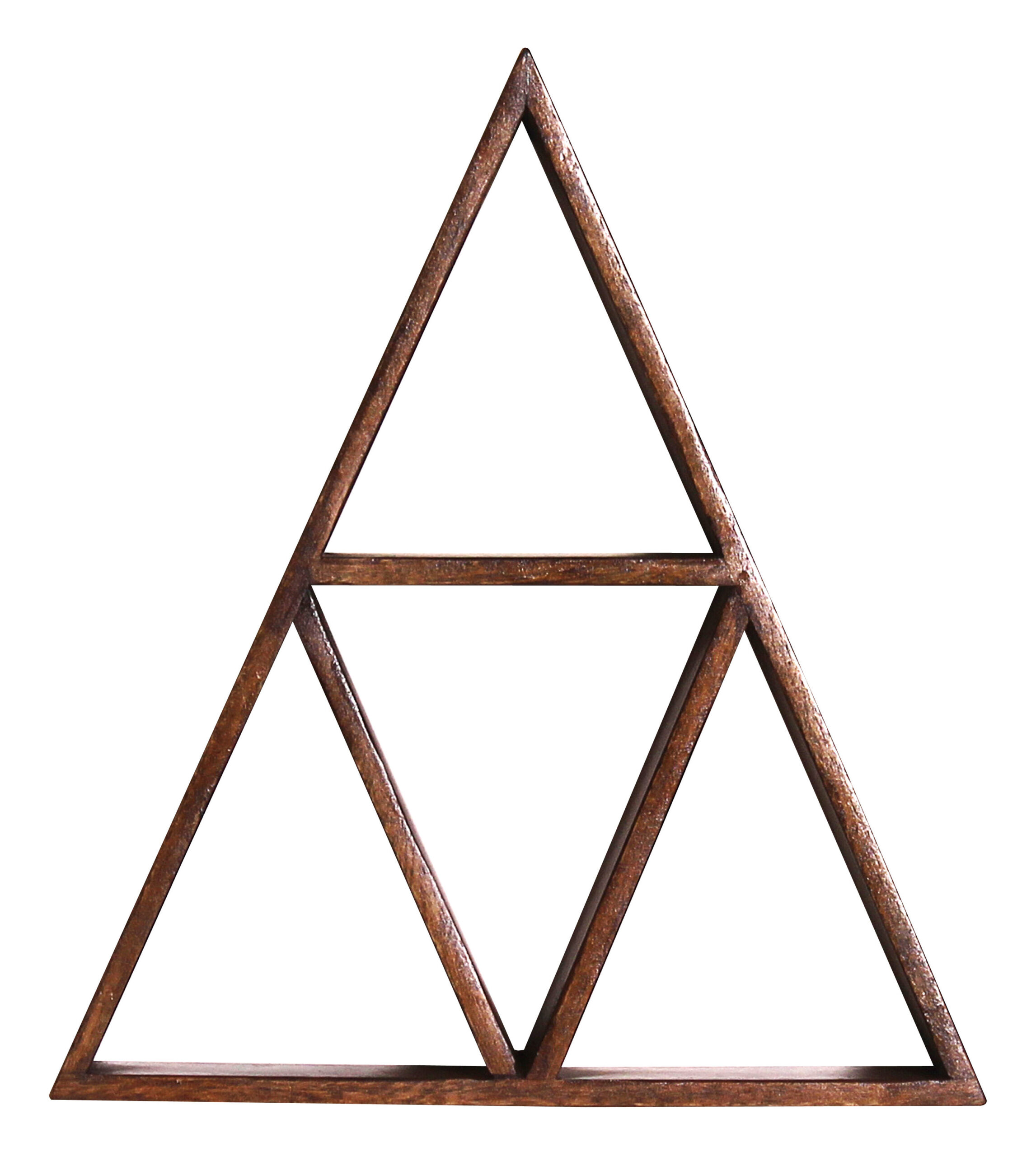 Met deze wandplank kun je je favoriete stukken in stijl presenteren en je muren een heel speciaal tintje geven. Het frame is gemaakt van mangohout. Dit ziet er niet alleen stijlvol uit, het is ook zeer robuust en stabiel. Dankzij de veelzijdigheid kan de plank bijna overal worden gebruikt. Een bijzondere blikvanger is de ongebruikelijke vorm van driehoeken in een driehoek. Het maakt niet uit waar de wandplank wordt geïnstalleerd – het is zeker een blikvanger.