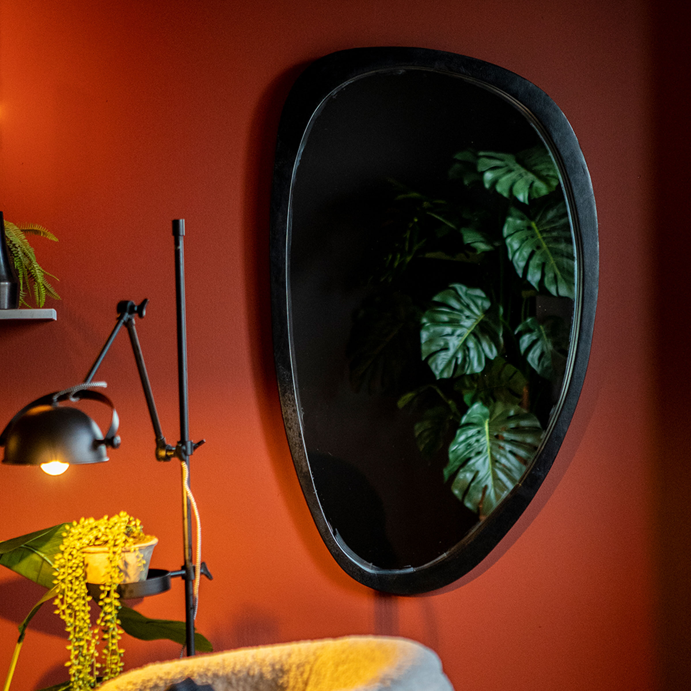 By-Boo Spiegel ‘Plecto’ Mangohout 120 x 70cm, Organisch, kleur Zwart