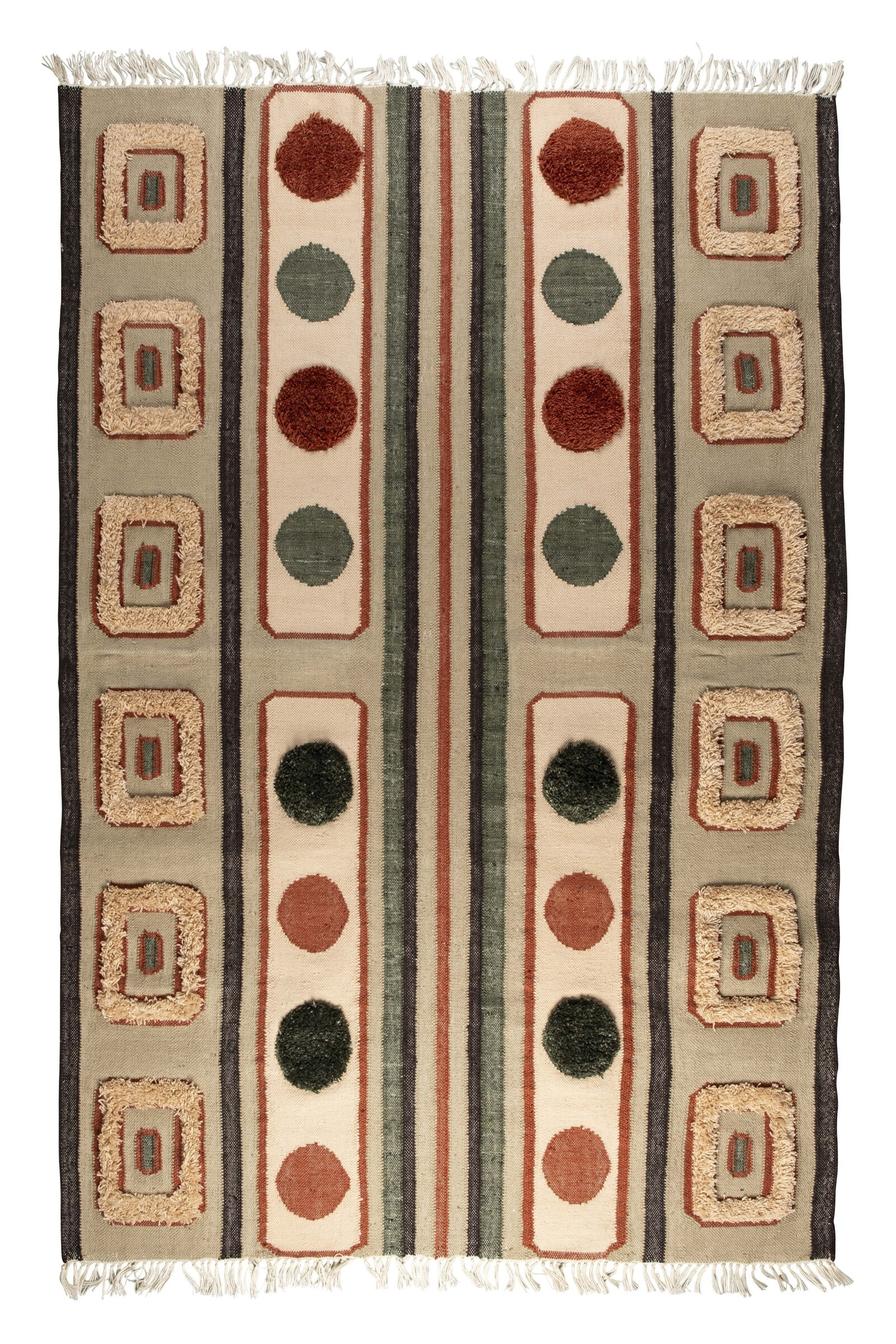 Meer kleur toevoegen aan je interieur doe je met de Dutchbone Haydon. Dit vloerkleed zorgt namelijk meteen voor een opvallend, retro tintje in huis. De combinatie van funky vormen en diepe aardetonen neemt je direct mee terug naar het gevoel van een seventies interieur. Bovendien zorgt de afwisseling in texturen voor een interessante look. De hoogpolige vlakken laten de kleuren en vormen tot leven komen en de franjes aan het uiteinde voegen nog wat extra speelsheid toe. Dit kleed is dan ook met recht een statement piece te noemen en vult de ruimte moeiteloos met een warme en authentieke sfeer.