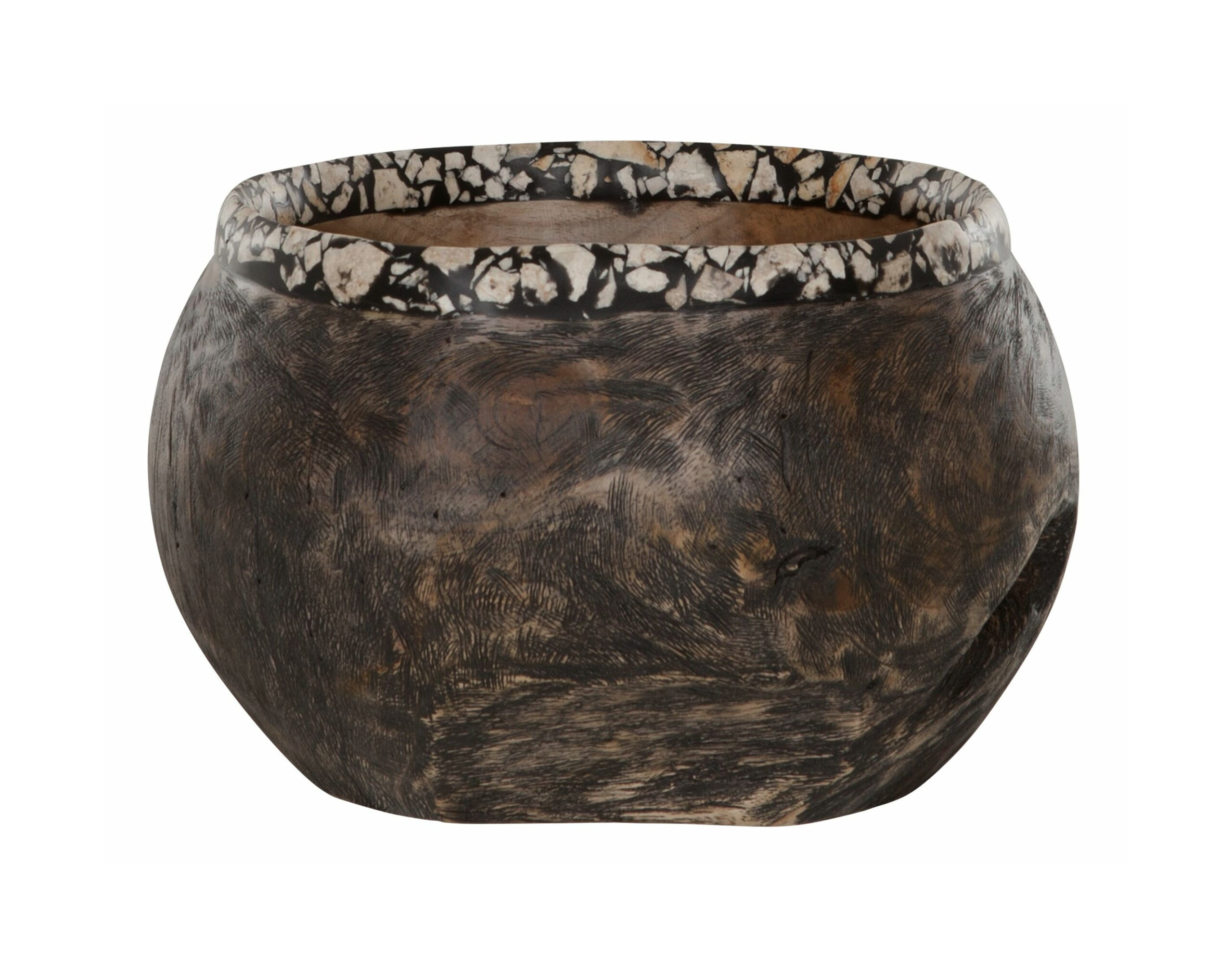 Pot Coral is gemaakt van teakhout en heeft een zwarte kleur met een naturel glans. De schaal heeft een afmeting van 16xØ26 cm.