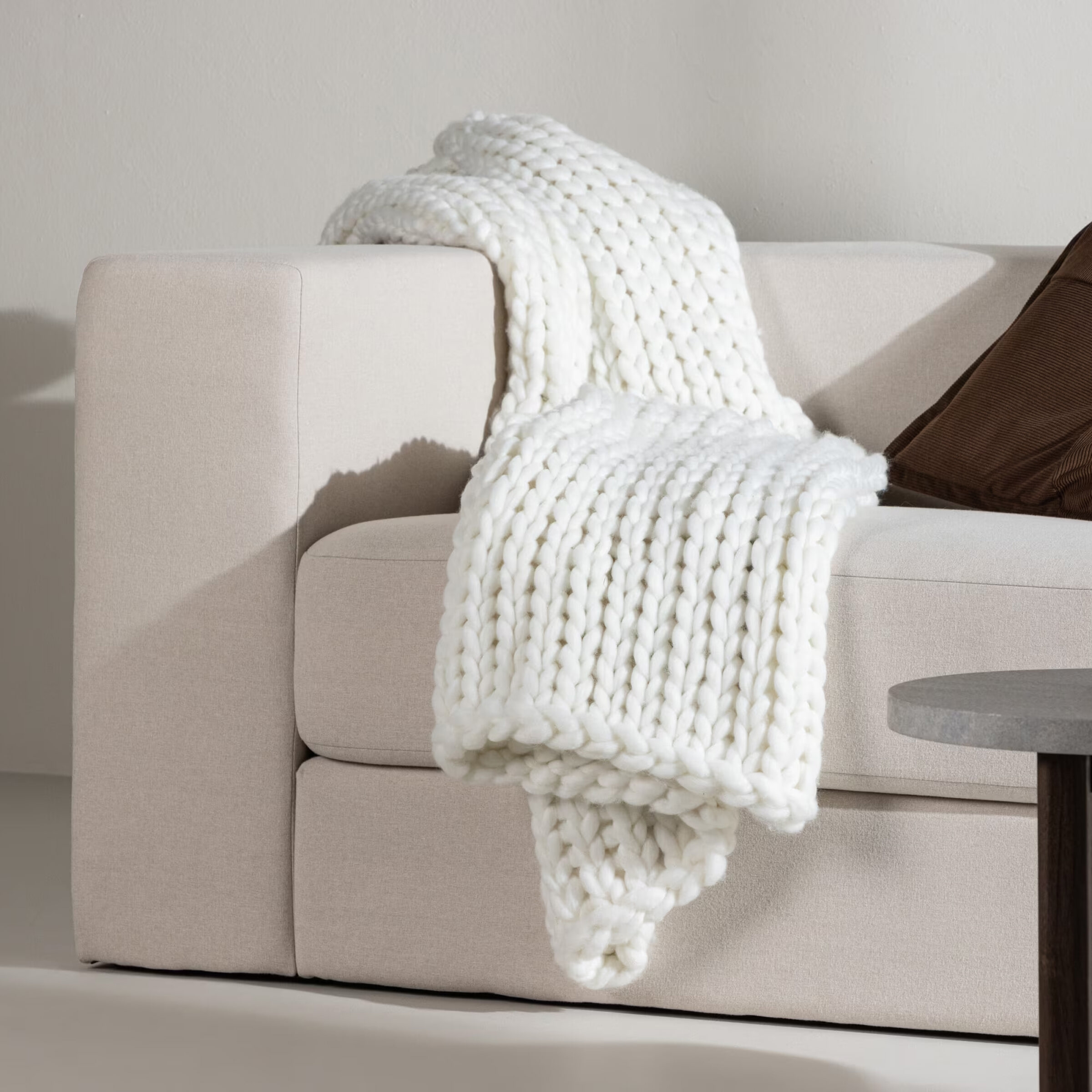 Kruip lekker onder de mooie deken Alvis met grote gebreide steken van polyestervezel en creëer een onweerstaanbaar knus gevoel in de woon- of slaapkamer! De deken is zacht en glad tegen het lichaam zonder breiwerk en met de grote steken wordt het iets heel bijzonders en opvallends voor je interieur terwijl het je warm houdt. Om de levensduur van je textiel te behouden, raden we aan het regelmatig te luchten en eventuele vlekken te verwijderen met vlekverwijderaar. Afmetingen: 130×170