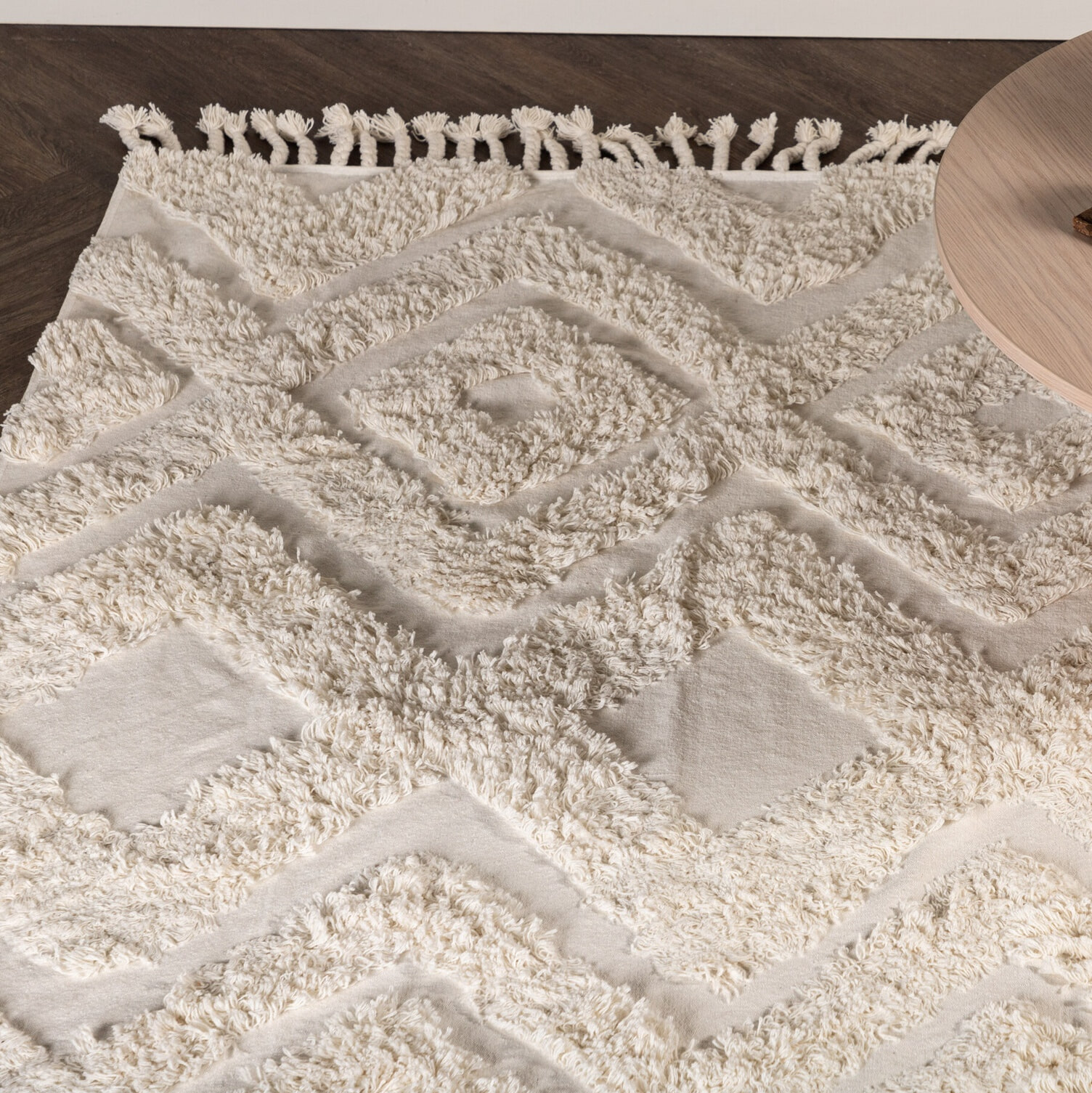 Versier je huis met een vloerkleed dat een opvallende en verwarmende indruk maakt! De katoenen mat uit de Isidra serie is een prachtig handgeweven vloerkleed in decoratief dessin met kleurbasis in wit. De getufte patronen van het tapijt in warme tinten hebben een iets hogere pool die een heerlijke dimensie aan de kamer geeft. Het ontwerp met franjes langs de korte zijden creëert een aanvullende totaalindruk op de krachtige, sierlijke patronen van de mat en geeft een moderne lift in huis. Een matte droom waar je gewoon graag je voeten in knuffelt! De afmeting van de mat: 300×200 cm.