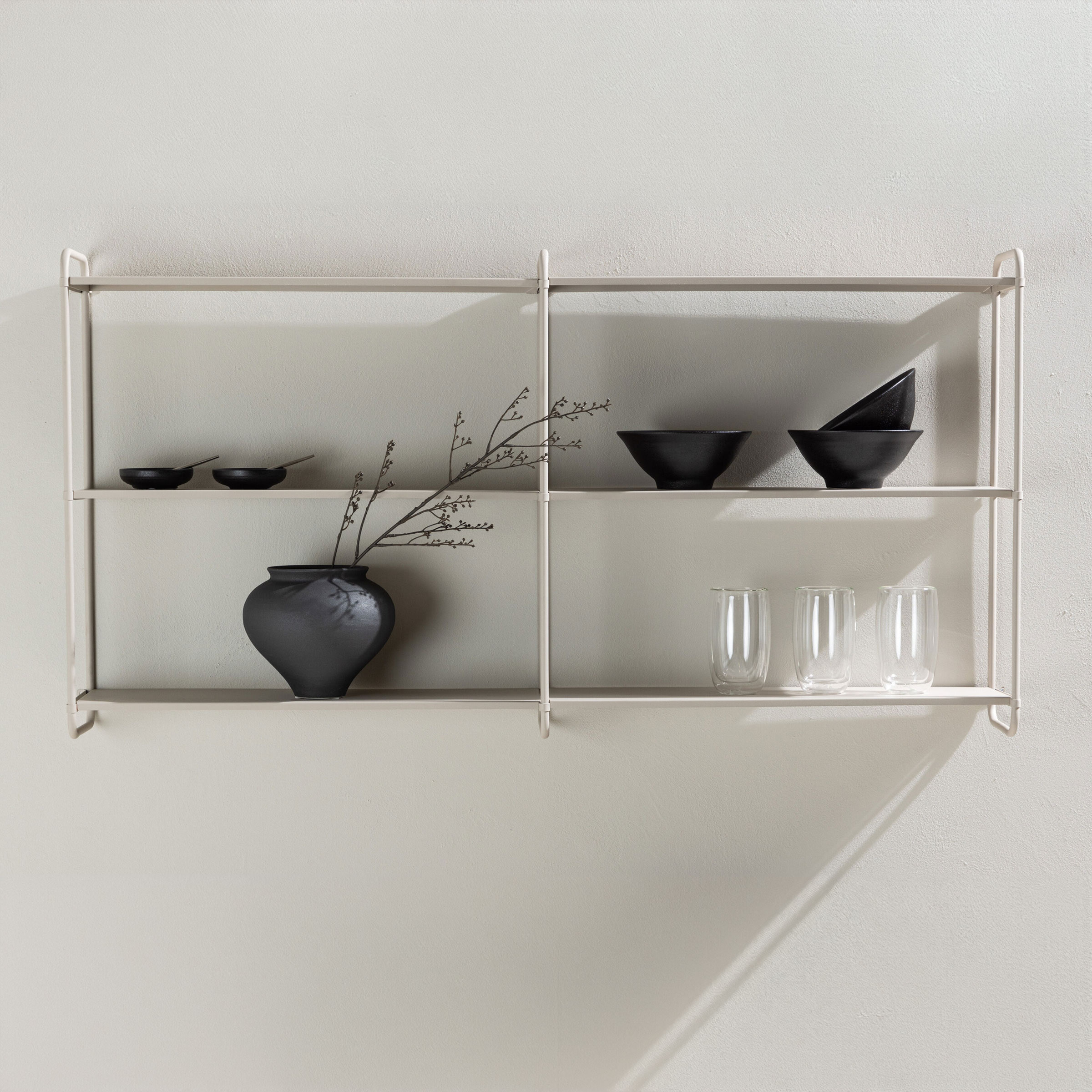 Deze wandplank is gemaakt van beige gepoedercoat ijzer dat naadloos past in verschillende stijlen en huizen. Het klassieke ontwerp is tijdloos en geeft je kamer een elegant tintje. Met drie smalle planken biedt Jaymie een stijlvolle ruimte voor je mooie decoraties. Hier kun je alles ordenen, van boeken tot planten en kaarsen. Houd je ruimte georganiseerd en elegant.