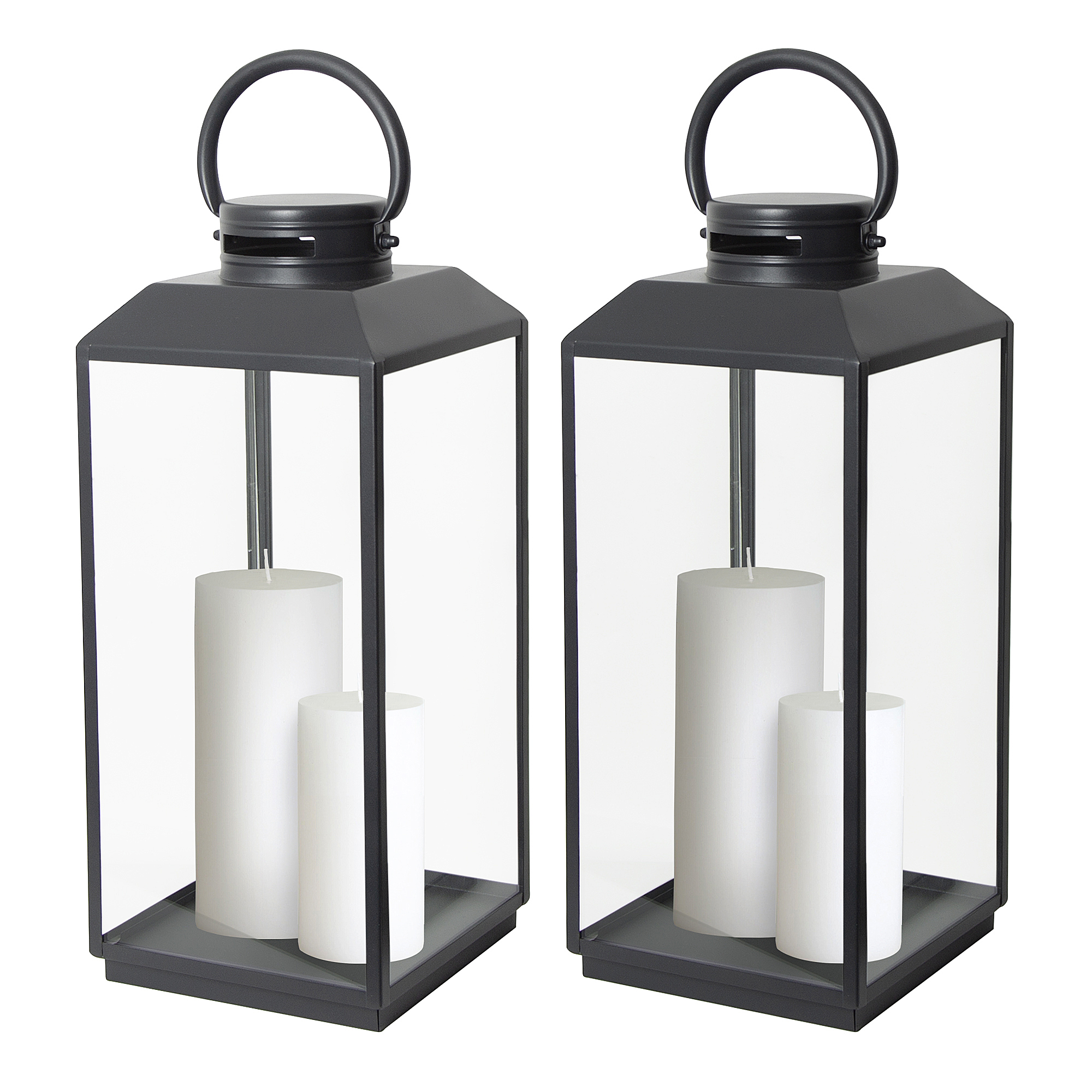 Newport Windlicht Set van 2 – Stoer en stijlvol in mat zwart met gepantserd glasOp zoek naar karaktervolle en sfeervolle woonaccessoires? Deze set van 2 Newport windlichten van Nostalux is een unieke combinatie van industriële uitstraling en hoogwaardige materialen. Vervaardigd uit stevig plaatstaal en voorzien van gepantserd glas, stralen deze windlichten kracht en elegantie uit. De matzwarte afwerking geeft ze een moderne én klassieke look. Met een hoogte van 56 cm per stuk zijn ze echte eyecatchers in elk interieur.Sfeervol combineren en flexibel in gebruikDe Newport windlichten worden geleverd zonder kaars, zodat je ze volledig naar eigen smaak kunt stylen. Combineer ze met andere windlichten of lantaarns in verschillende maten voor een speels en sfeervol geheel. Deze set van twee is ideaal om symmetrie te creëren op een vensterbank, dressoir of onder een veranda.Dankzij het stevige handvat verplaats je de windlichten eenvoudig van binnen naar buiten. Let op: bij veelvuldig buitengebruik kan het materiaal na verloop van tijd worden aangetast.
