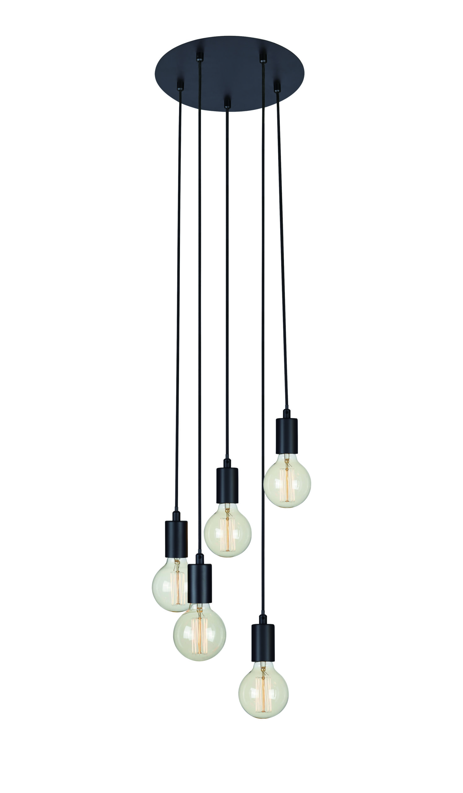 Nieuw in ons assortiment! De Sky 5 lichts Hanglamp zwart met metalen plafondplaat van Scandinavisch design. Deze plafondlamp heeft een kabellengte van 1,5 meter en is hiermee zeer geschikt voor een hoog plafond.De lamp heeft grote lamphouders (E27) en is geschikt voor peertjes met energieklasse A++ tot en met E. Combineer daarom voor het mooiste effect de hanglamp met een sfeervolle (kooldraad) lichtbron voor een mooi resultaat. De lichtbron wordt niet standaard meegeleverd, maar kan indien gewenst gemakkelijk via onze website worden mee besteld.