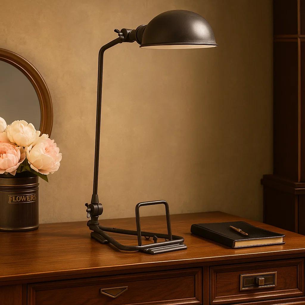 Een echte Nostalux topper! De Harvard is een zeer gewilde uitbreiding in de Vintage Style Originals verlichtingsarmaturen. De Harvard is handvervaardigd van hoge kwaliteit en vrijwel onverwoestbaar! Een pracht exemplaar nu te koop bij Nostalux online of af te halen in onze winkel. De Harvard is een table & desk lamp met een verstelbare arm. Zelfs de kap is zwenkbaar waardoor je het licht nauwkeurig kunt richten. De tafellamp Harvard maakt een stoere indruk. Een stijlvolle, stoere verschijning voor jouw mooie bureau of werkplek. De Vintage Harvard Desk lamp heeft een E27 fitting waardoor je kunt kiezen uit vele lichtbronnen.